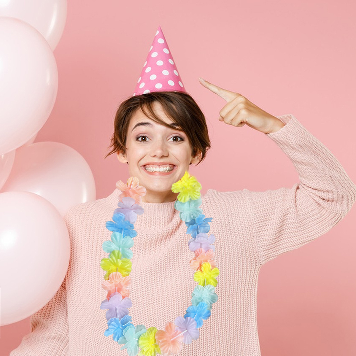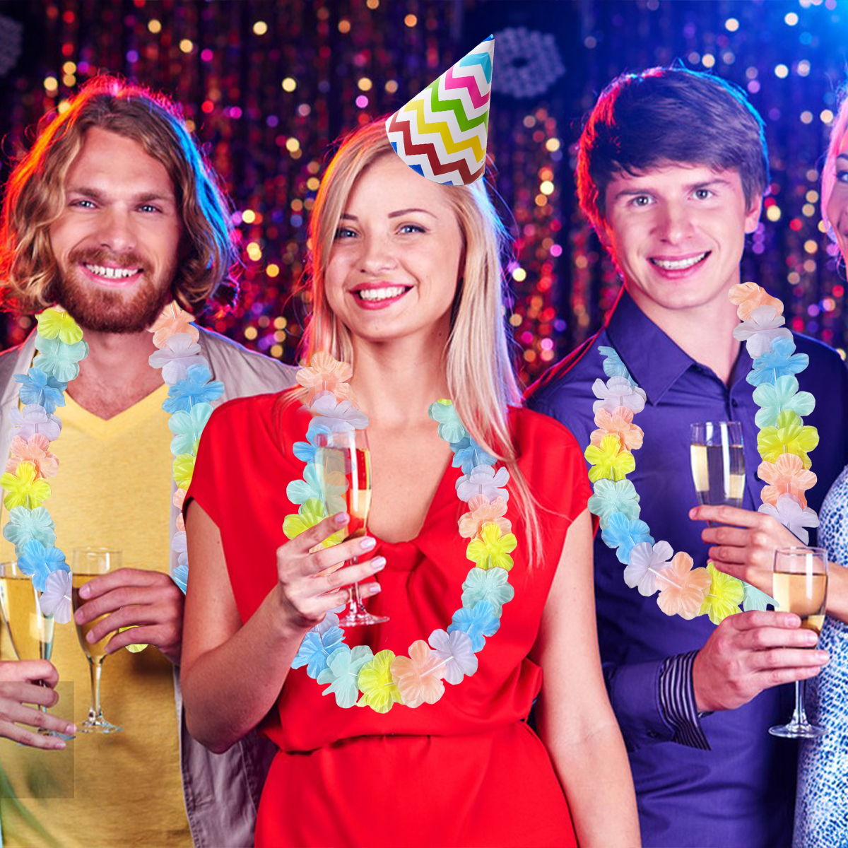 Home > 24 Birthday Party Flowers Lei Summer Colorful Tropical Flower Necklaces Lei Hawaii Luau Dance Party Favors Decoration Bulk For Holiday Birthday B