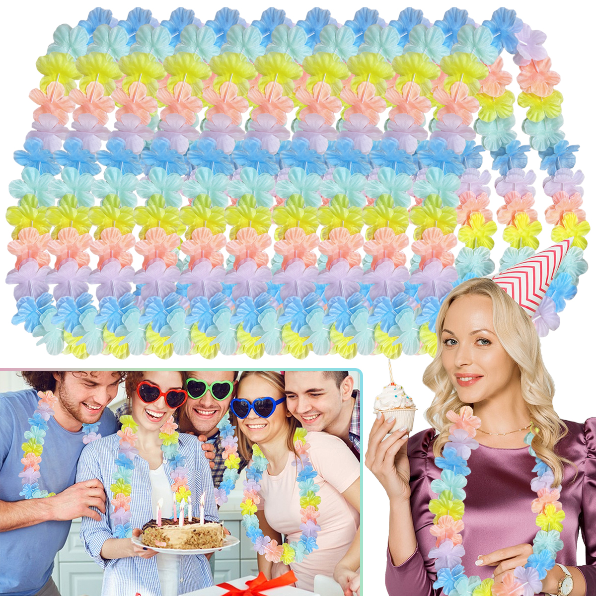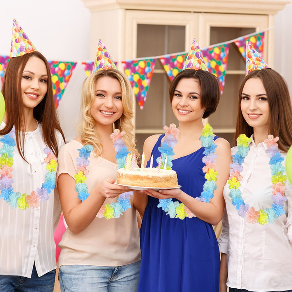 24 Birthday Party Flowers Lei Summer Colorful Tropical Flower Necklaces Lei Hawaii Luau Dance Party Favors Decoration Bulk For Holiday Birthday B