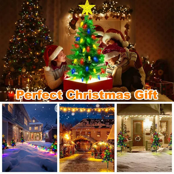 *Perfect Christmas Decoration & Gift*:This 8 Modes Solar Christmas Tree Pathway Light with adorable Christmas decor is an ideal decoration in Christmas to create a lively,romantic and fantastic atmosphere after inserting them in your backyard,front door,garden,making this holiday season unforgettable!It's also a perfect present gift for your parents, friends, or your neighbor.