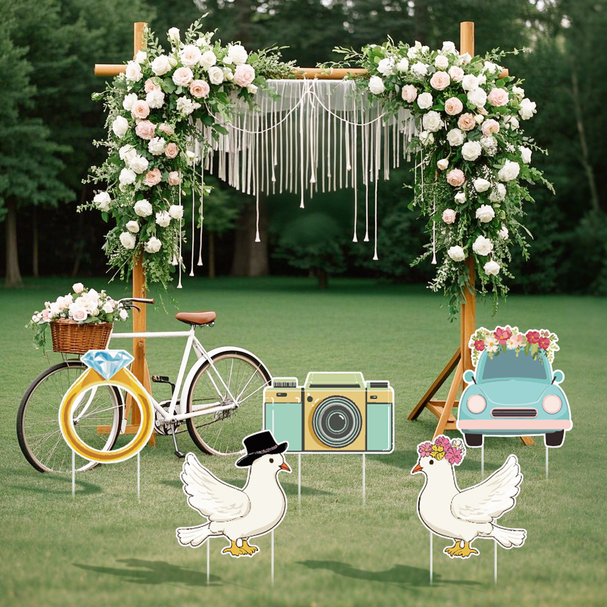 Wedding Party Decorations : The set of White wedding outdoor yard decor is very suit for wedding theme party for any season.