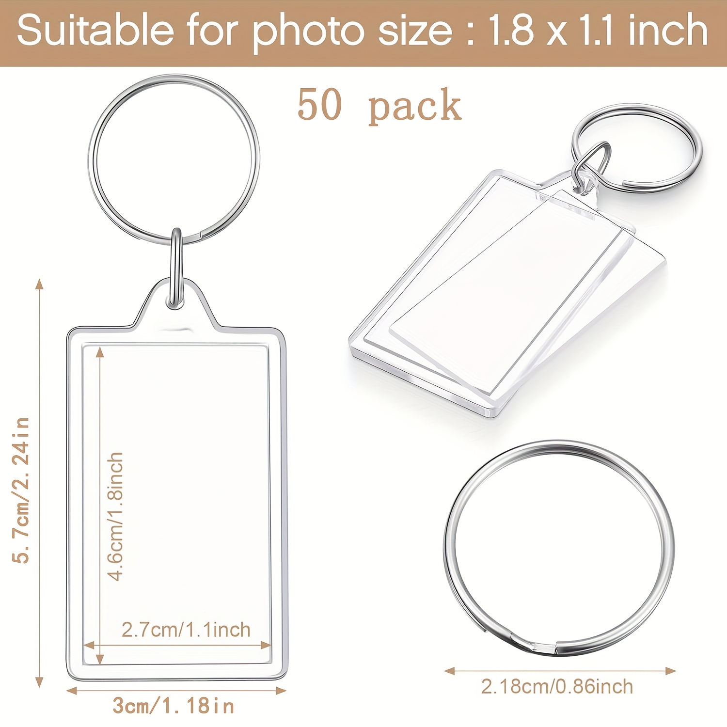 50-pack Transparent Acrylic Photo Keychains, Blank Photo Insert Key Rings, DIY Personalized Gifts, Perfect For Family And Friends