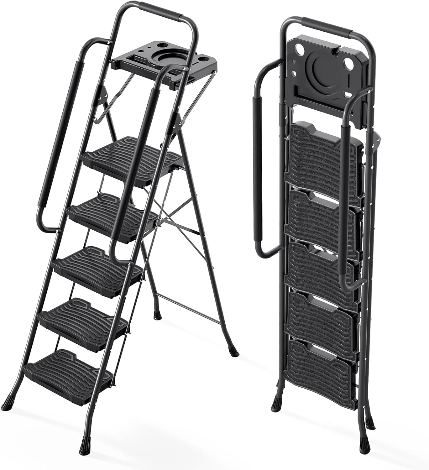 Home > 63-inch Plastic Steps, 5-fold Steps, Anti-slip Treads And Comfortable Handrails, Sturdy Steel Frame Portable Steps
