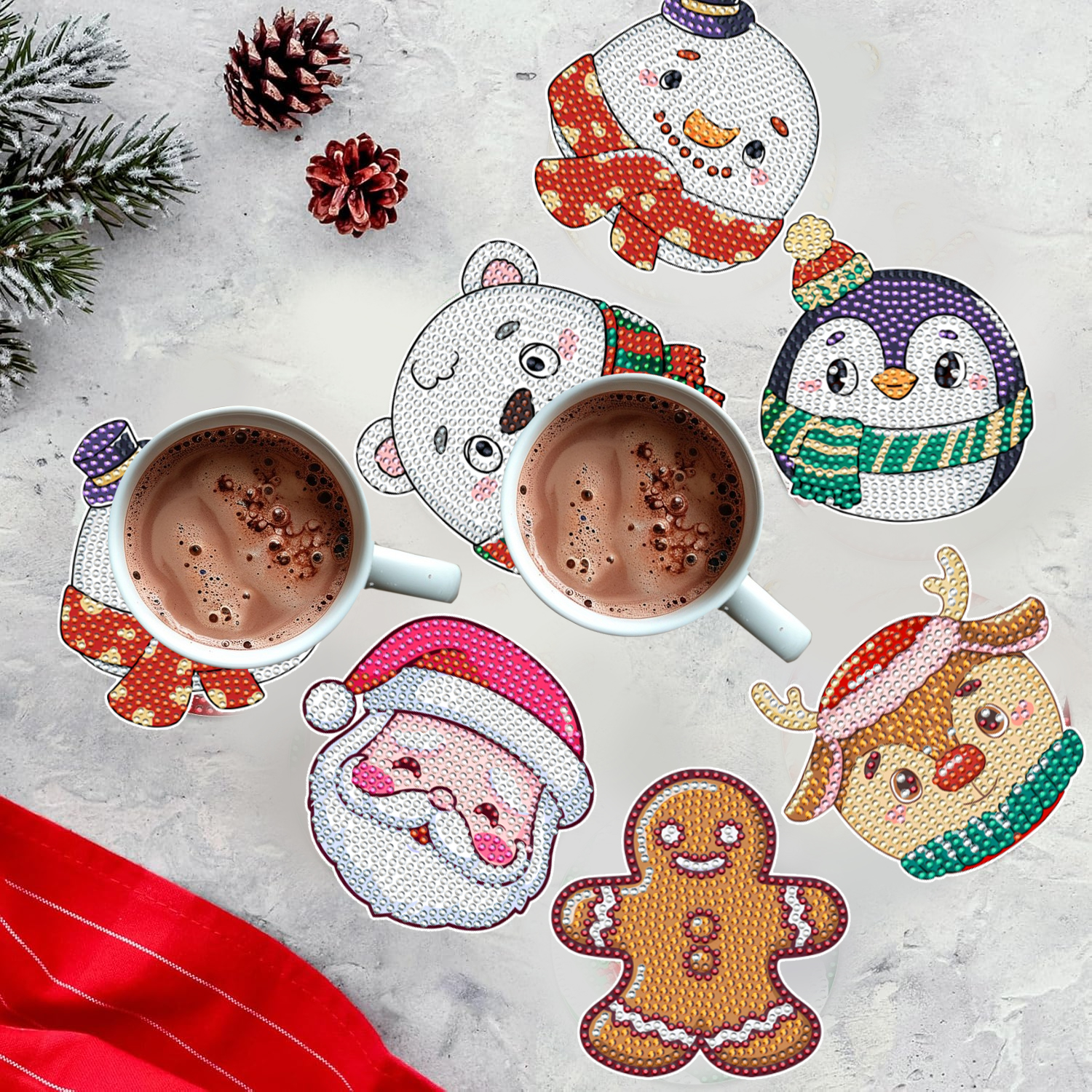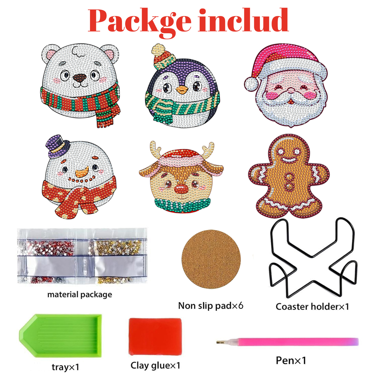 Package contents: 6 Pcs Xmas Rhinestones Art Coasters Kit