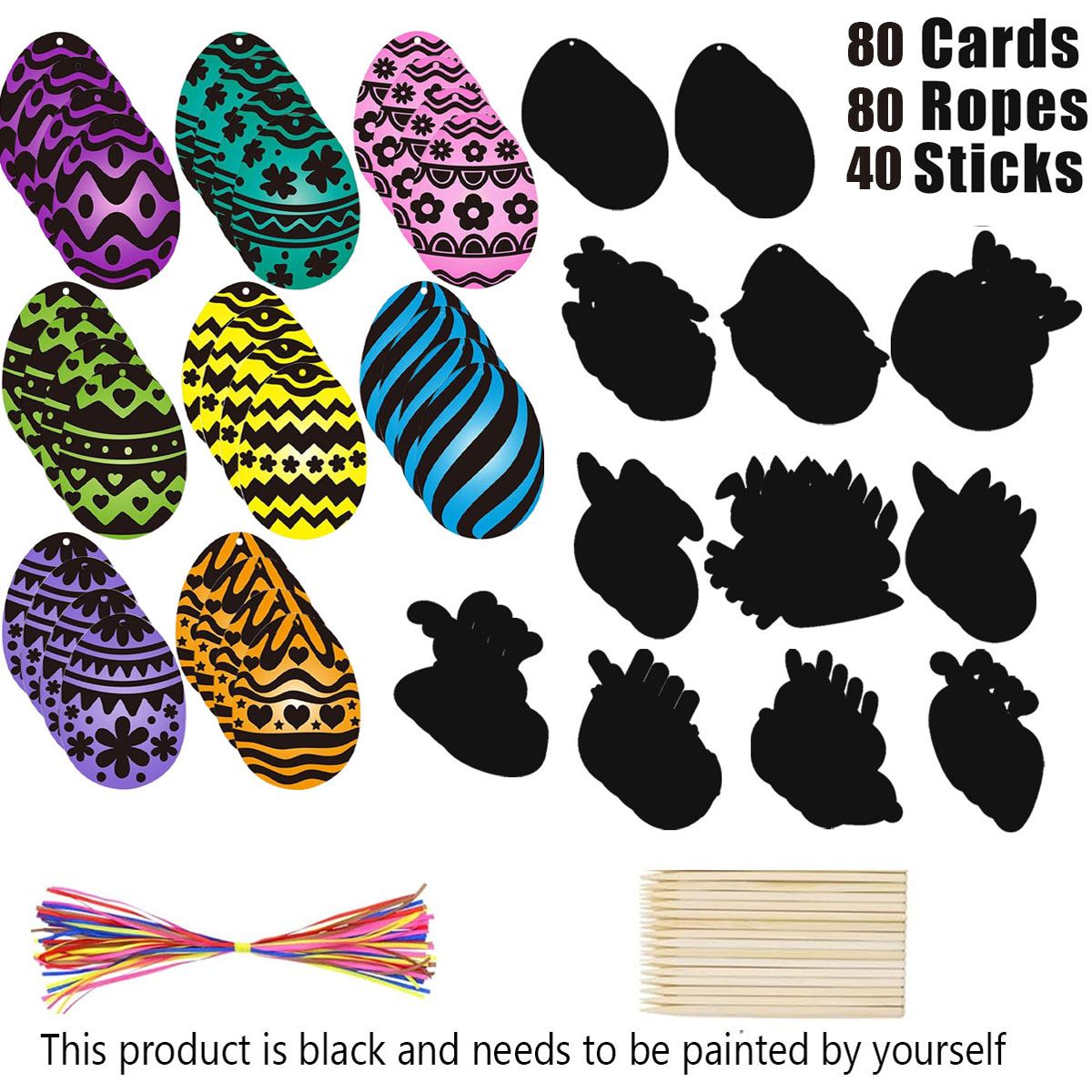 Package contents: 80Pcs Easter Scratch Art with Ropes and Sticks