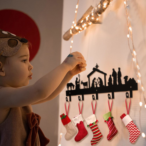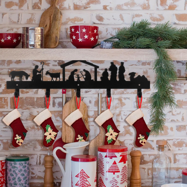This exquisite aluminum Nativity scene wall hanging brings the true spirit of Christmas into your home, perfect for celebrating the holiday season with faith and style.Crafted from lightweight and durable aluminum, this detailed wall decor features the holy Nativity scene, designed for easy hanging and long-lasting beauty as a meaningful holiday gift.Dimensions: 43.18cm (17in) × 13.97cm (5.5in)Hook quantity: 5 hooksMaterial: Sturdy iron (metal)Style: Nativity scene silhouette + functional hooks, Christian/Christmas theme storage wall deco