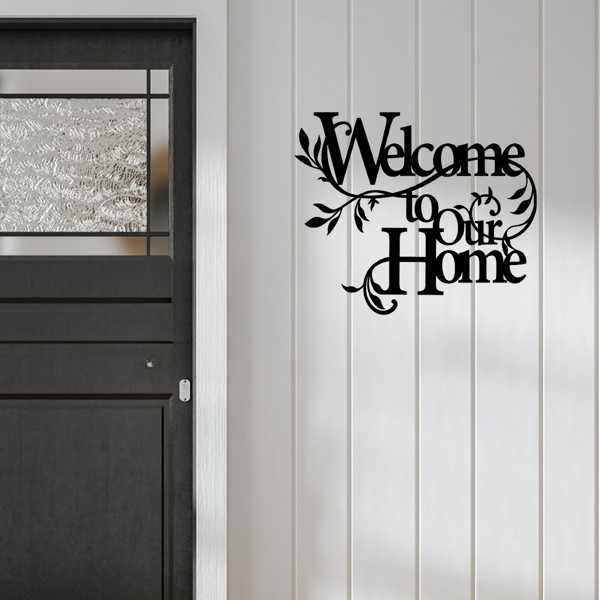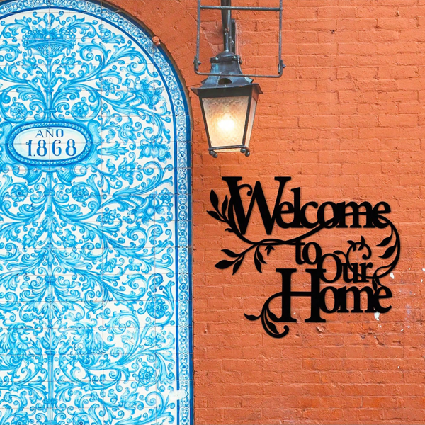 Enhance your home's entrance with our elegant aluminum welcome floral wall art, a perfect housewarming gift that adds a warm and inviting touch to any entryway.Crafted from durable aluminum with a delicate floral design and a welcoming message, this decorative piece features a rustic charm and a lightweight yet sturdy construction, ideal for sprucing up your front door, porch, living room, or hallway.Welcome sign wall decor, iron floral letter art, cozy entryway metal hanging, home welcome accent, decorative quote wall artDimensions: 30cm (11.81in) × 25cm (9.84in)Material: Sturdy iron (metal)Style: "Welcome to Our Home" typography + floral vine motif, cozy welcome-themed wall decor