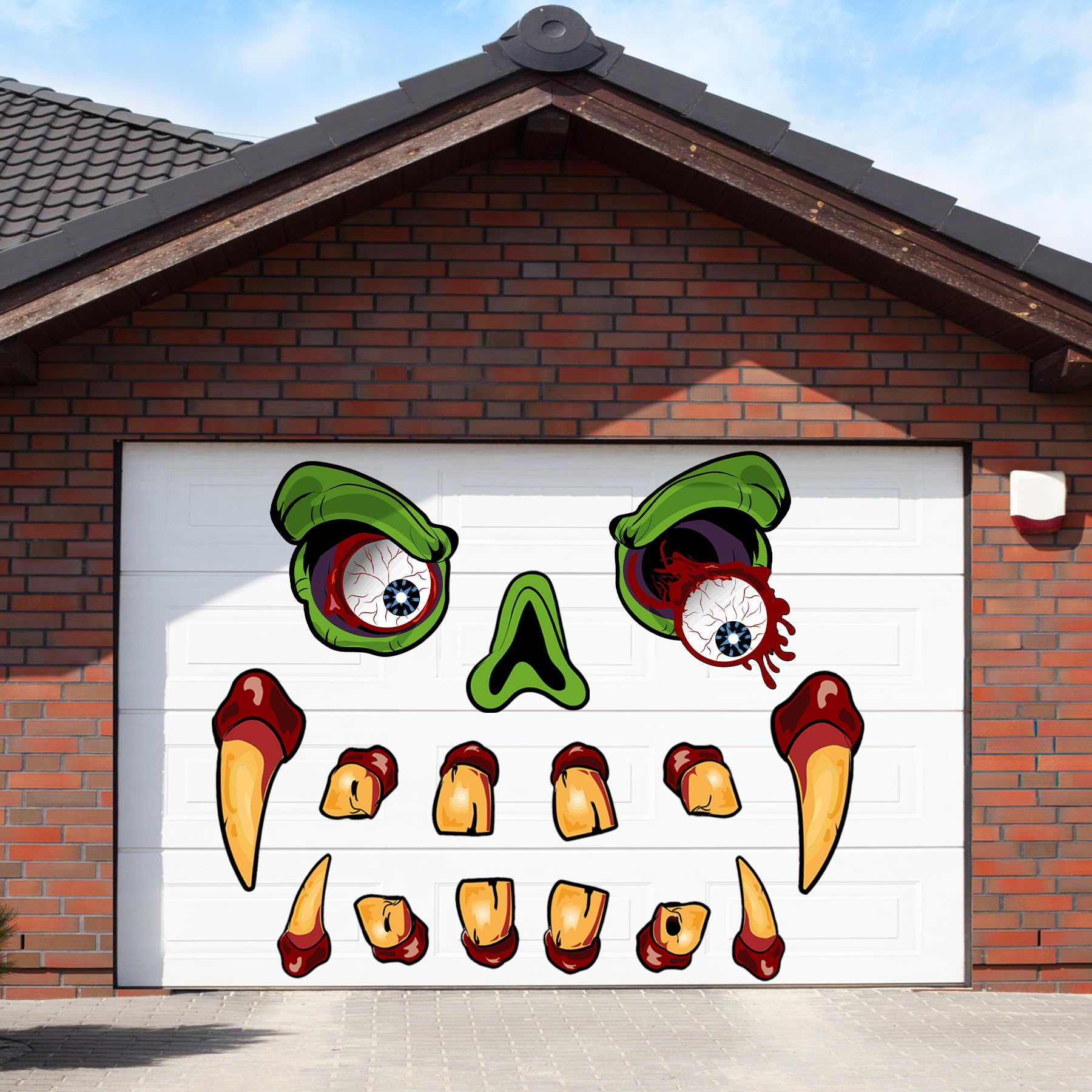 Large Trunk Or Treat Car Decoration Kit - Monster Face Garage Door Decor With Eyes, Teeth - Outdoor Stickers For SUV, Jeep Clearance