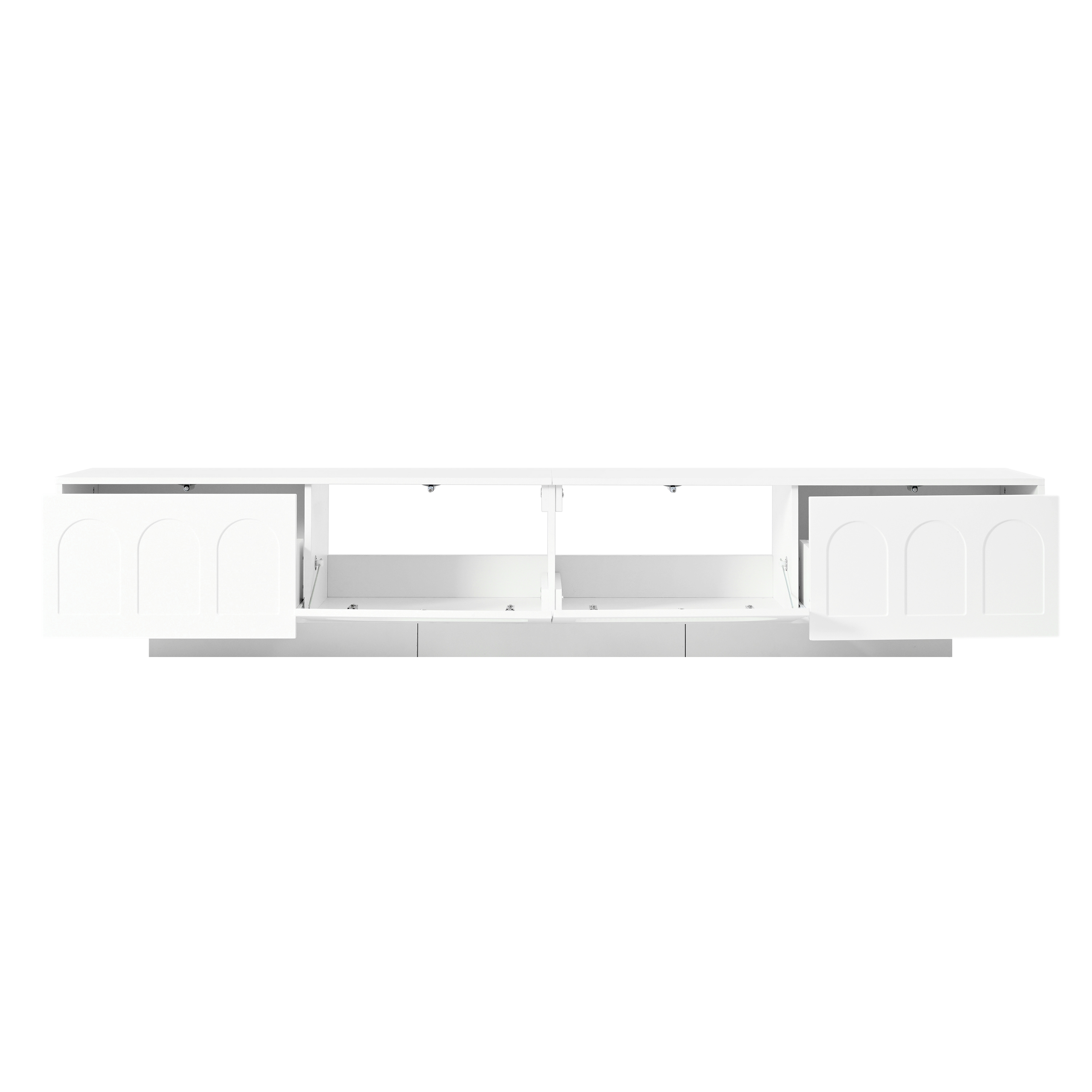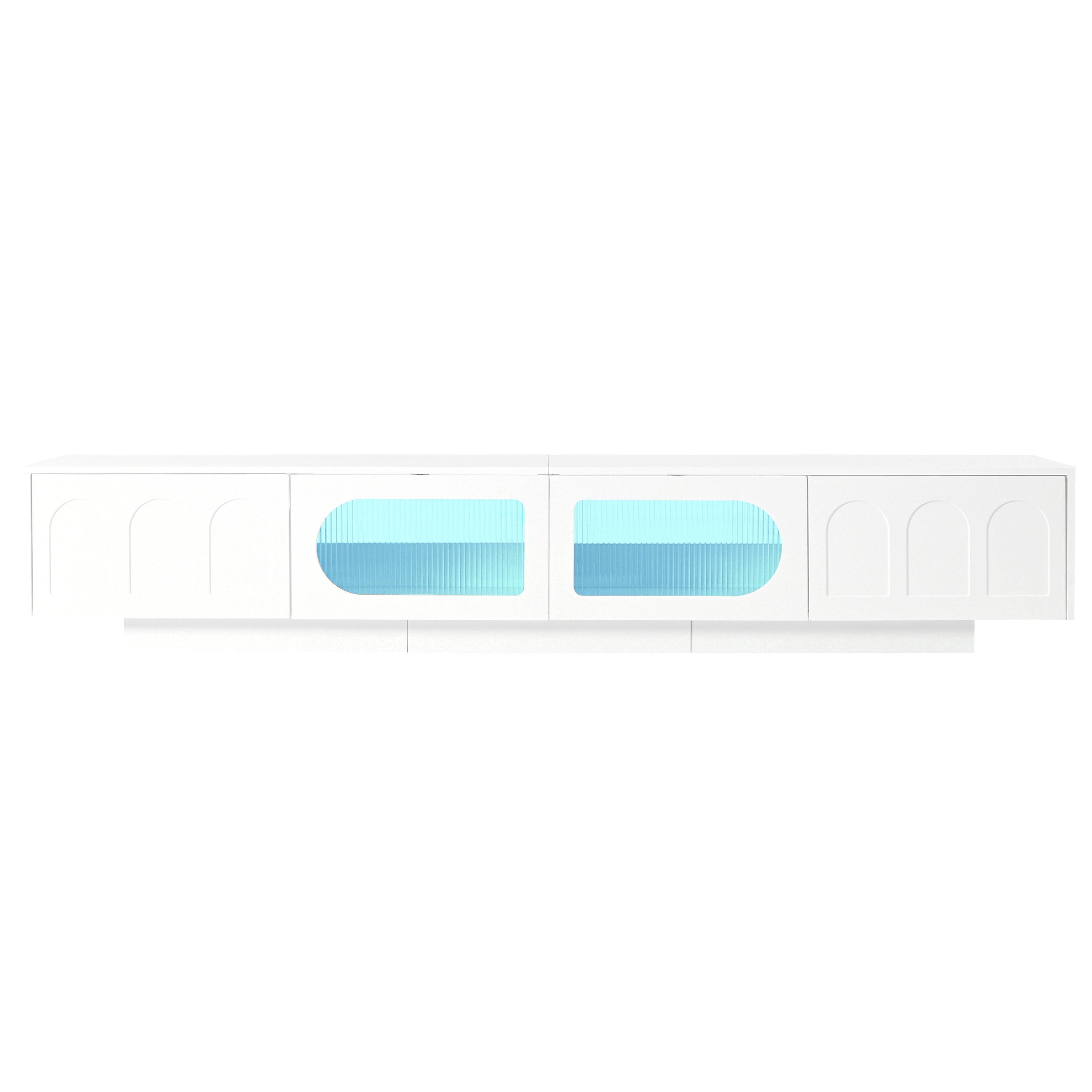 Product Name:ON-TREND TV Stand with Fluted tempered Glass Doors for TVs Up to 95'', Functional Media Console with Arched Cabinet Doors, Entertainment Center with APP-Controlled LED Light for Living Room, White