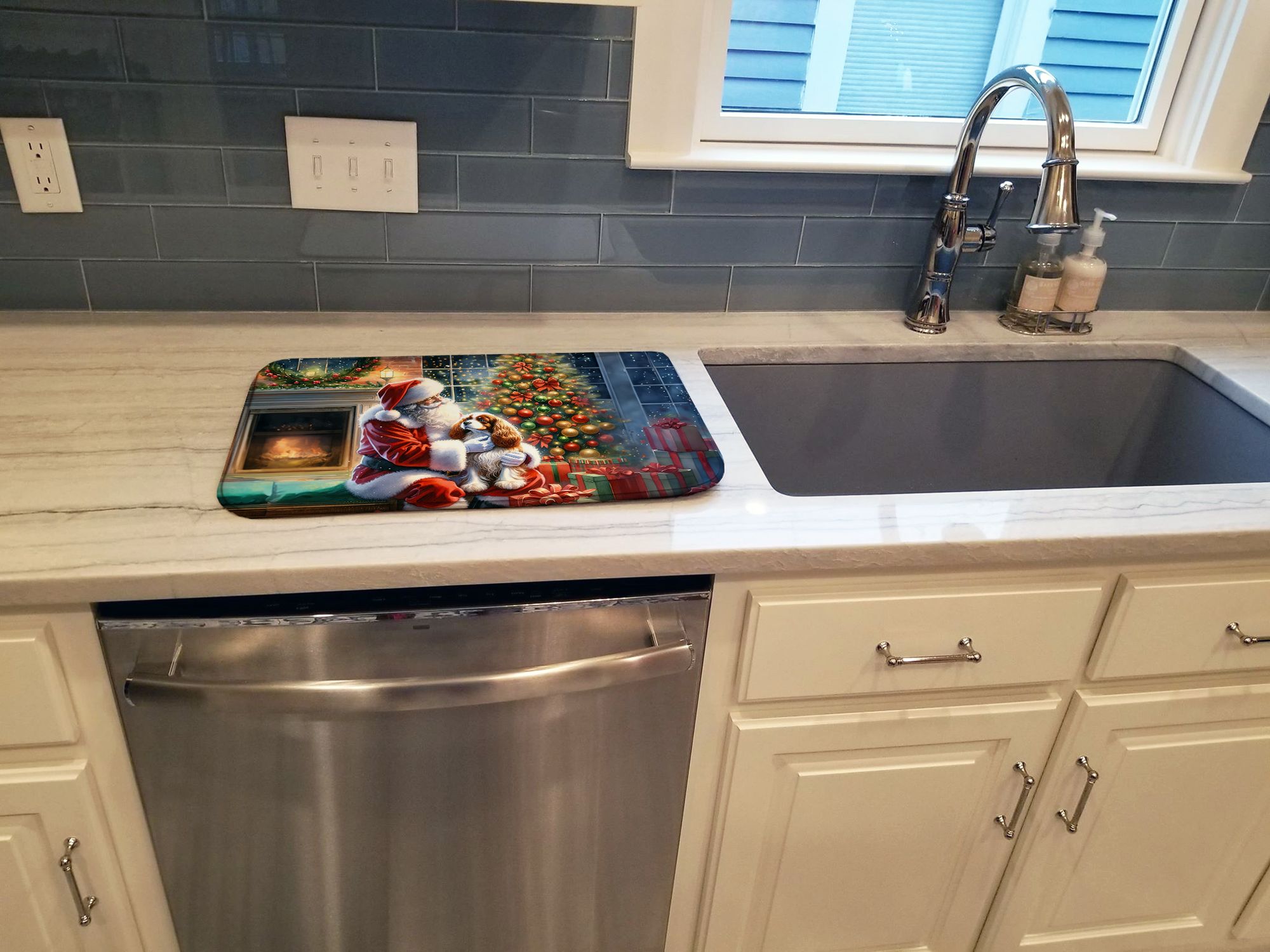 Cavalier Spaniel and Santa Claus Dish Drying Mat Absorbent Dish Drying Mat Pad for Kitchen Counter Dish Drainer Mat for Countertop, 14 x 21"