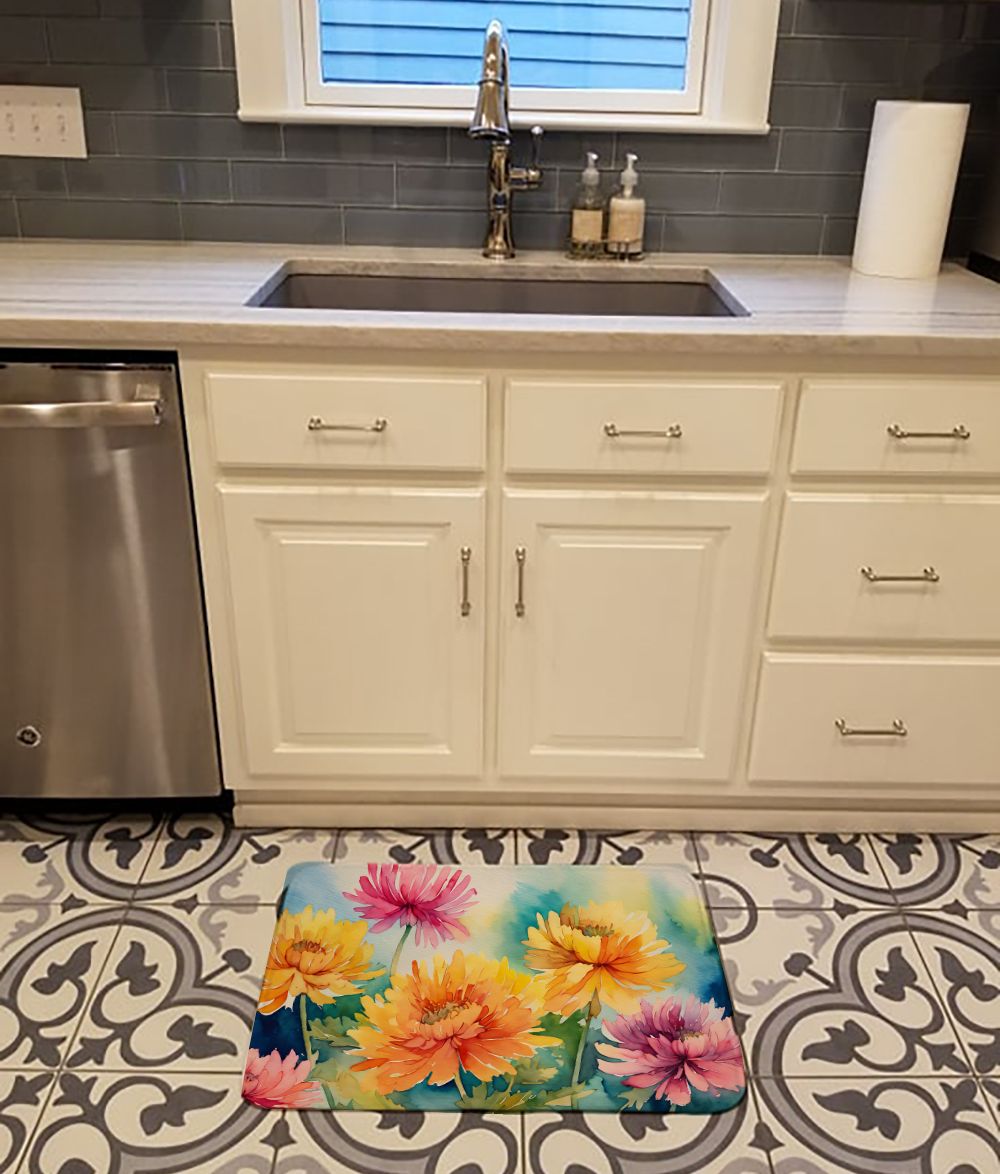 Home > Chrysanthemums in Watercolor Memory Foam Kitchen Mat Machine Washable Anti-Fatigue Mat Cushion Comfort Bath Mat or Kitchen Rug