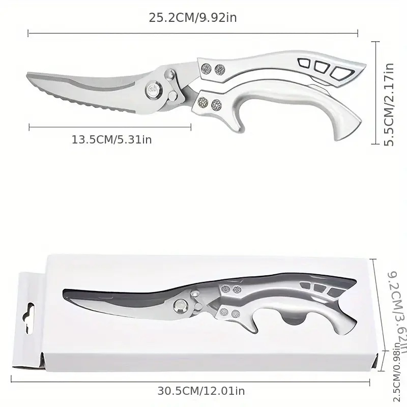 German industrial grade stainless steel kitchen scissors designed specifically for modern kitchens, forged with high carbon stainless steel, featuring automatic rebound function and detachable design, making them the perfect tool for chefs, home chefs, and culinary enthusiasts to easily handle chicken, fish, meat, fruits, and vegetables!