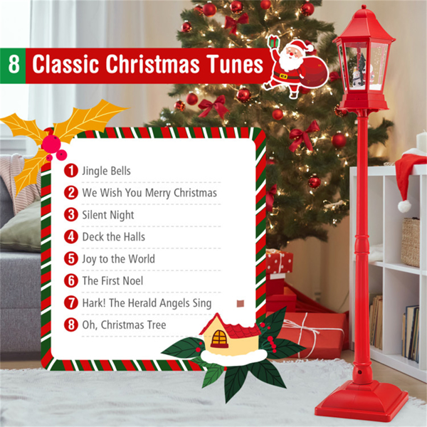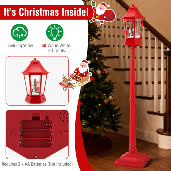 Home > 64" Christmas Streetlamp Decor: Santa/Snowman/Tree Scene, 60 Warm White LEDs, 8 Tunes, 2 Modes (Stand/Tabletop), Red, 12.5×12.5×64", 4.5lbs