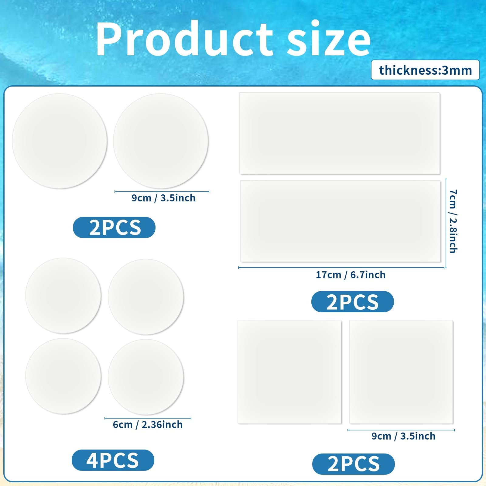 The inflatable pool patch kit contains 4 kinds of air mattress patch with different sizes to meet your needs in various repair scenarios. With a thickness of 3mm, bounce house patch repair kit can provide stronger repair force during the repair process, making inflatable repair kit an ideal choice for you to repair inflatable items.